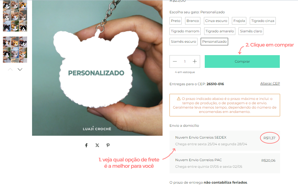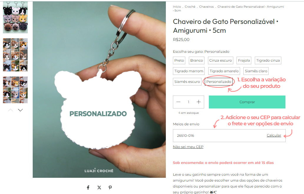 Fazer sua compra na Luaji Ateliê é simples, rápido e 100% seguro! Para te ajudar, preparei um passo a passo com todas as etapas do processo. Assim, você pode escolher seu amigurumi favorito, finalizar o pedido e aguardar sua encomenda com total tranquilidade! ✨